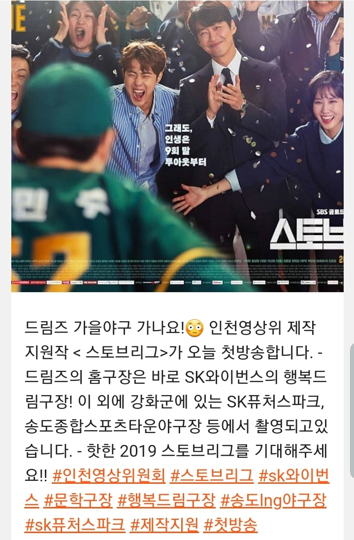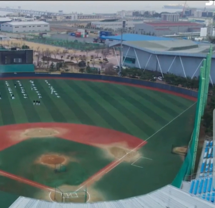 그렇게 검색하다가 뜻밖의 답을 인천영상 위원회의 인스타그램에서 찾게 되었습니다. 정답은 바로 "송도 LNG 종합 스포츠타운 야구장"입니다. 화면과 외야 너머의 건물이 일치하여 확인할 수 있습니다.