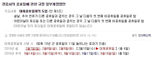 이제부터 추석 / 설날 / 어린이날 / 광복절 / 개천절 / 한글날 / 크리스마스가 휴일과 겹쳐도 좌절하거나 분노하지 않아도 되게 됐습니다~ 여러 부운~~